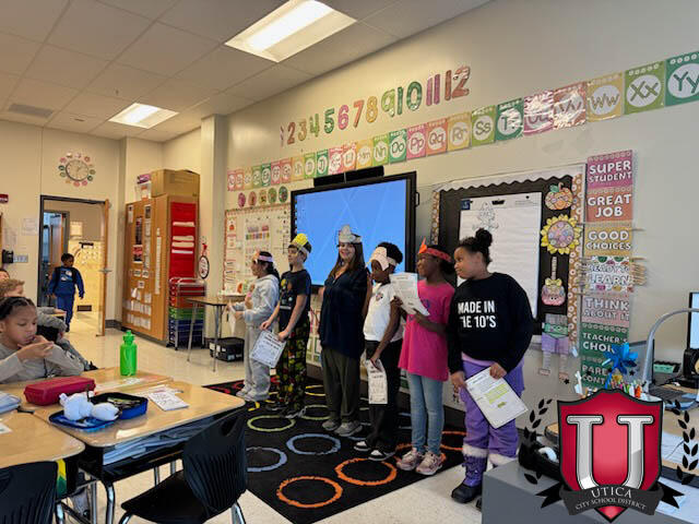The Drama Club is presenting their production, "The First Thanksgiving," to all Kindergarten through second-grade classrooms. This unique performance offers students a historical portrayal of the pivotal meeting between the Pilgrims and Native Americans.
